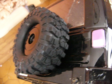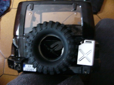 dneska dalsi up :) zadne rezerva od geriho, sice rozstrihana ale svoj ucel splni, jazdit sa na nej nebude :D :D "disk" spraveny z obalu na CD/DVD (taky valec co tam je 5-10 a viac kusov) plus zozadu to drzi ta zelena vec od Axialu co davaju ku kazdemu kitu :D kedze geri to asi zostrihol trosku viac ako na 1.9 drzi to tam perfektne a kedze mam uchycovanie karoserie zozadu, vzdy mozem lahko rezervu dat dole, a nasledne nasadit naspat :) :)